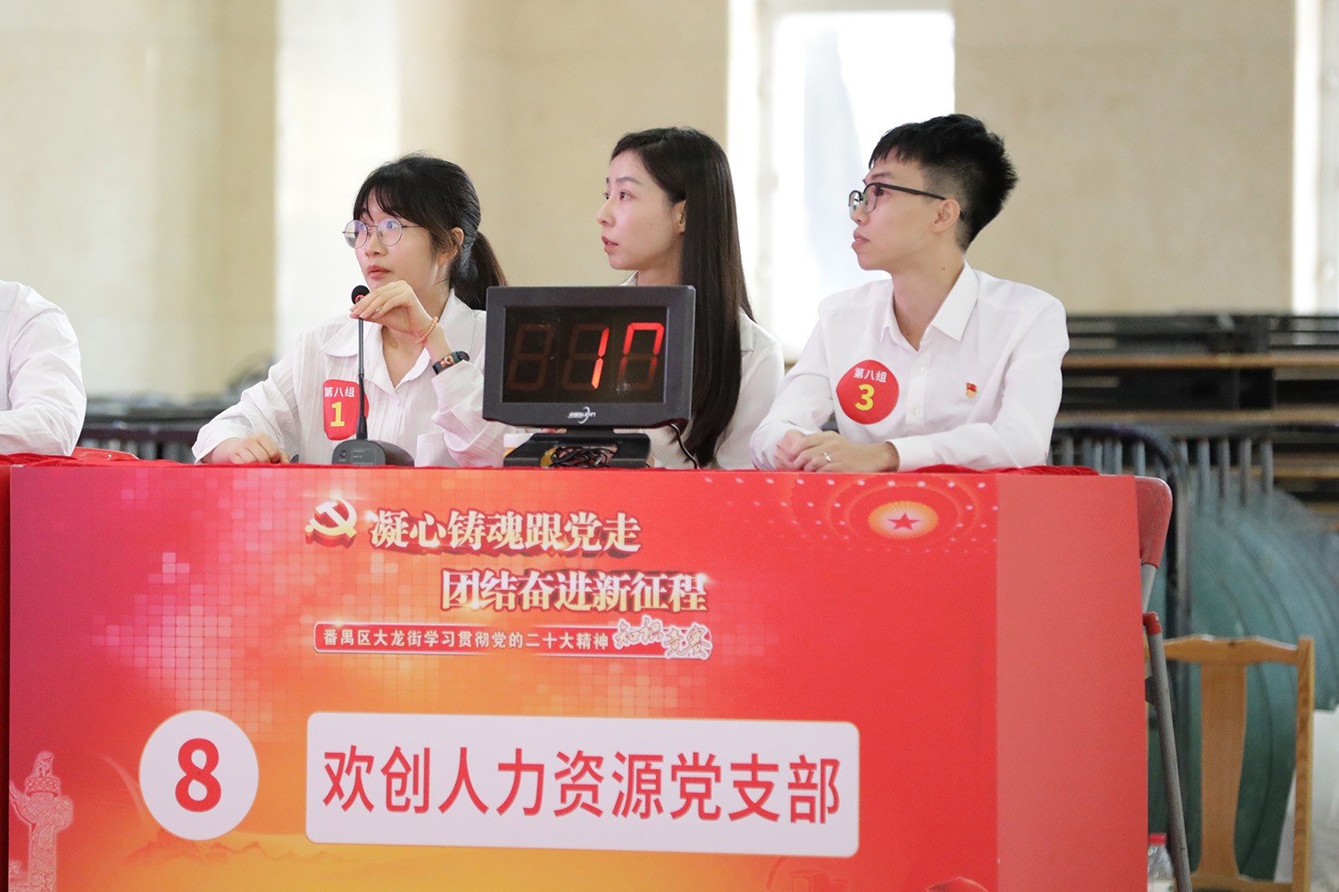 收到中共番禺区大龙街工作委员会关于举办学习贯彻党的二十大精神知识竞赛的通知后,乐鱼网页版集团党支部高度重视,把参加知识竞赛作为学习贯彻习近平新时代中国特色社会主义思想、全面贯彻党的二十大精神和庆祝中国共产党成立102周年的重要抓手,全面部署,精心组织,广大党员干部、入党积极分子踊跃报名,最后选出政治素质高、业务能力强的年青同志参加比赛,他们分别是集团人事行政部郑圆圆、乐鱼网页版大学邓演梓、信息公司苏泽彬。
