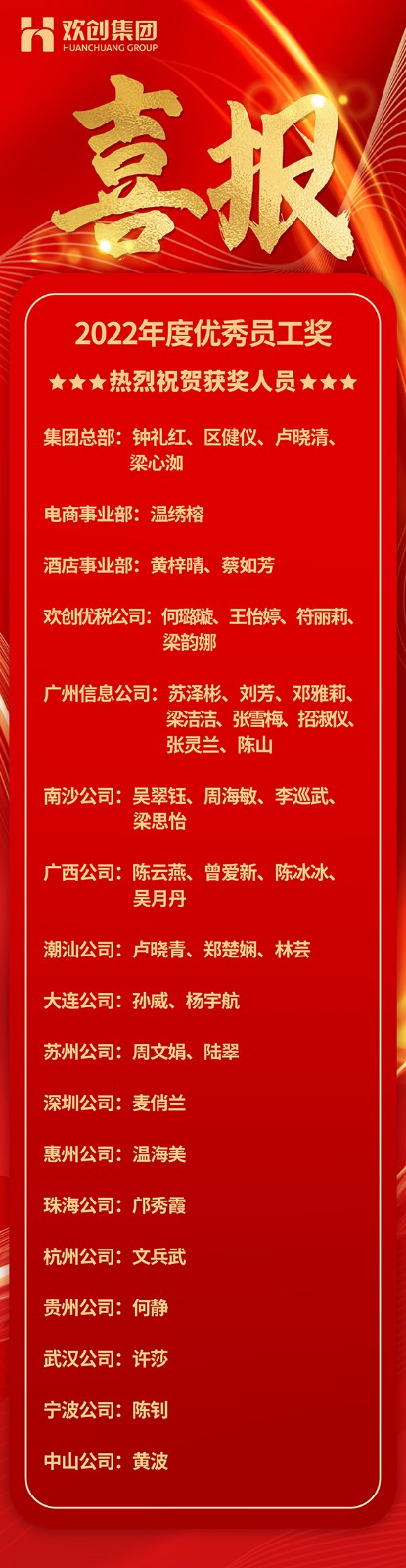 根据乐鱼网页版集团公告的2022年度评优方案,经过各单位的推荐及集团的评审,2022年度乐鱼网页版集团员工个人类奖项评优结果出来啦!现将获奖情况公告如下: