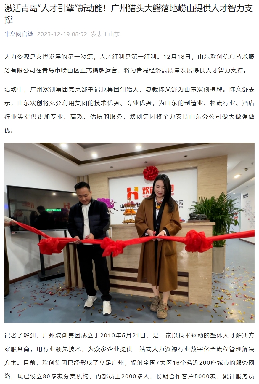 半岛网:激活青岛“人才引擎”新动能!山东乐鱼网页版信息技术服务有限公司正式揭牌运营